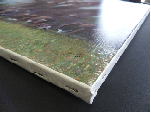We carefully stretch canvas art and giclees to be straight on the bars.