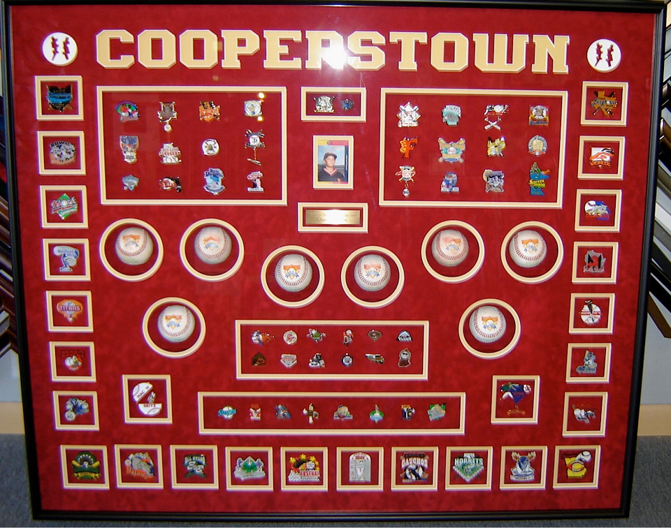 Our computerized matt cutter can make perfect cut openings for collages, bring us you baseball cards, family pictures, metals and pins collages are great for weddings, anniversaries and birthdays.