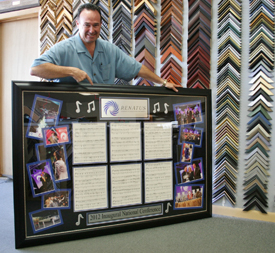 Each year we have a theme song written and performed for our companies National Conference. As a birthday present my family presented the sheet music to me for framing and display at our Corporate office. At Renatus we don’t do anything small so I wanted to create something that would share the experience of our National Conference and really wow people when they enter our reception area. The challenge was to find a framing company that could pull it off. After calling a few framing companies out of the yellow pages I was growing concerned that no one had the expertise locally to handle the job. That’s when I found Frame-It. Patty, Jim and their staff are fantastic to work with. Their creative problem solving approach was refreshing and the end product is just what we were looking for, AMAZING!